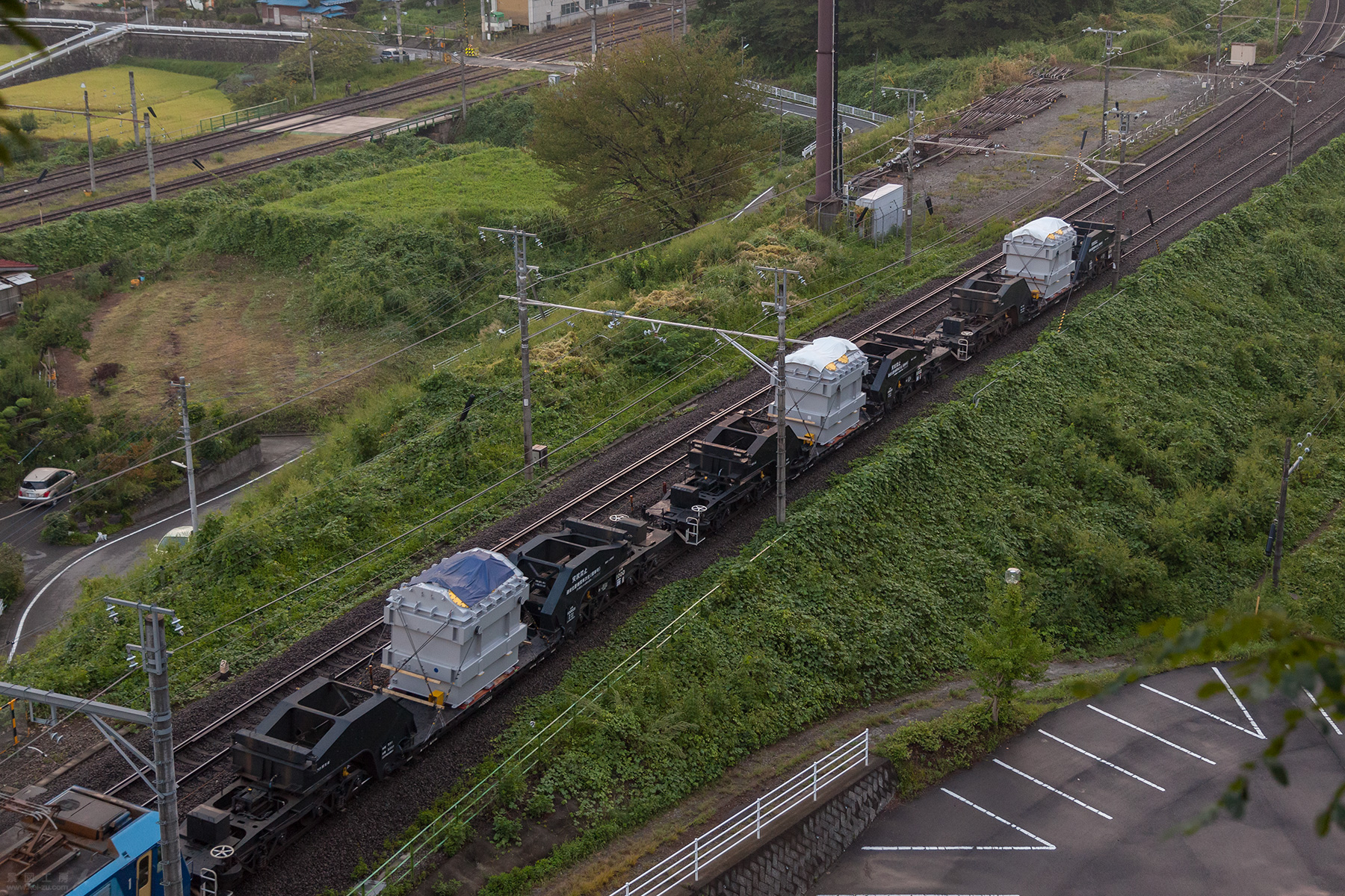 速度制限のある特大貨物は専ら夜間に運行されるため、積荷時の走行を撮影できるのは稀なのであるが、荷下ろし駅の到着時刻が撮影可能な光量のある時間帯であったため、走行時の撮影も兼ねて遠征することを決めたのであった。