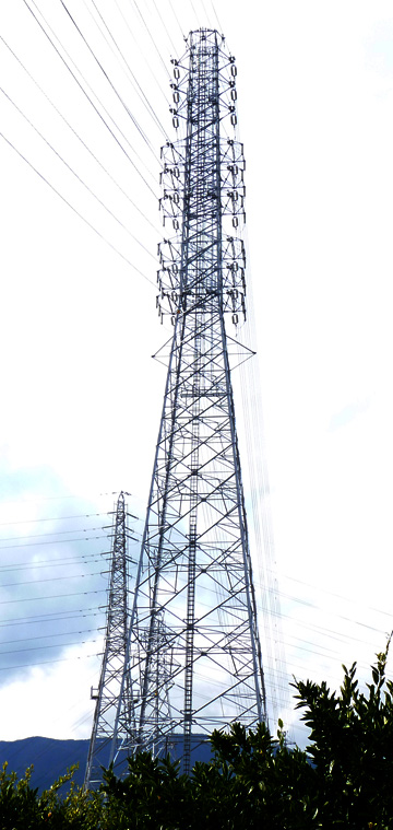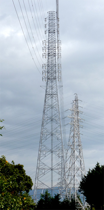 特記すべき事項として、付近を南下する送電線JR西相模-平塚線、JR西相模-沼津線を跨ぐため、高さ94mの巨大鉄塔となっている点が挙げられます。これだけの高さを有しながら柱体が管材でなく、L型鋼材で施工されている鉄塔は今では珍しいのではないでしょうか。