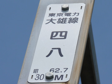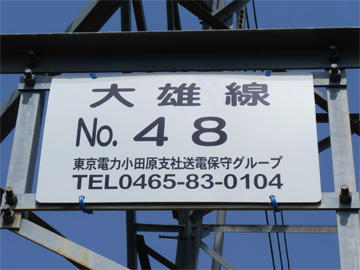大雄線48号鉄塔は大雄線の最老番となります。場所は山北町の高松山ハイキングコース(ビリ堂経由)上にあります。車では近づけないため、鉄塔マニアもここまではあまり訪れていないようです。 地図(別窓)>> 大雄線 No.48 東京電力 大雄線 48 昭和62年7月竣工 高さ30m 結界写真 背後に見えるのは高松山南麓を行く田代幹線