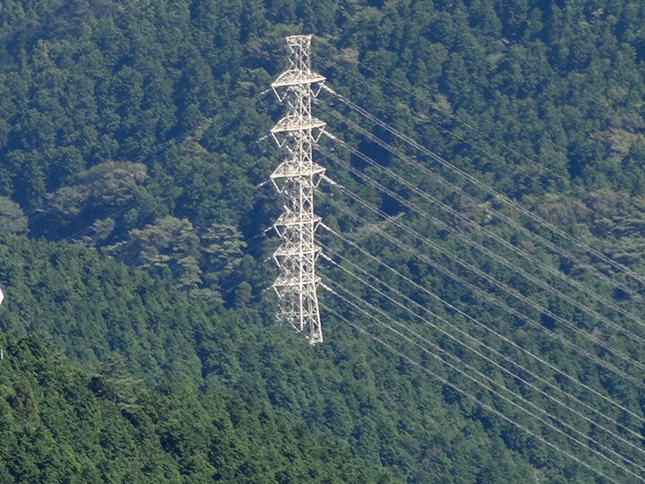 秦浜線は筆者の師であるS沢氏の資料によると、新秦野変電所を起点に中相模変電所を経由し、京浜変電所を結ぶ275kVの送電線です。9号鉄塔は丹沢大山の南、浅間山と高取山を結ぶ尾根上にあり、この尾根を東西に越えていくため、ひときわ標高の高い位置となり、浅間山や高取山を同定するときのランドマークとして利用できます。