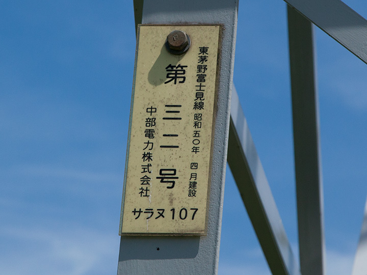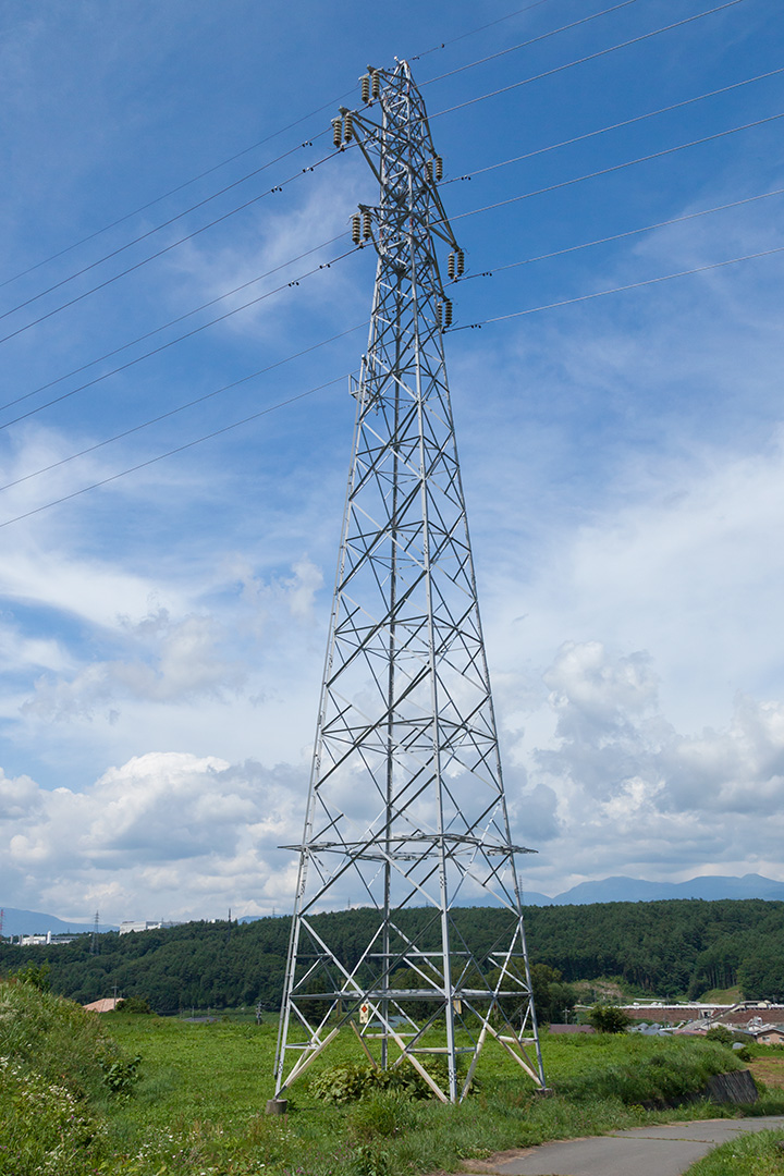 中央本線の富士見-すずらんの里間でロケハンしているときに立ち寄った鉄塔です。 東茅野富士見線は中部電力が管轄している送電線のため、東電のものとは仕様が異なり、また手元に資料がないため詳細は不明です。 No.32鉄塔は棚田になっている斜面の農道脇にありました。
