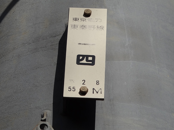 鉄塔下層の回線を示す「善波連絡線」のプレート
