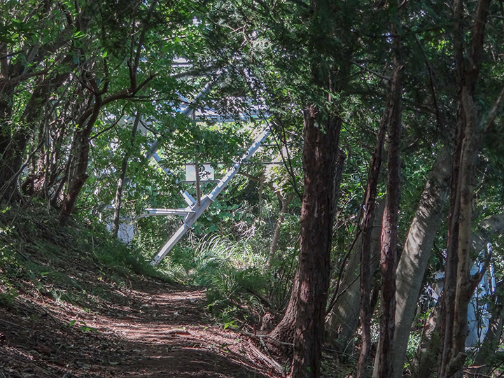 No.14鉄塔は善波峠とその北側の念仏山(標高357m)を結ぶ尾根上の登山道を跨ぐ形で設置されています。