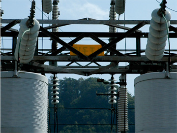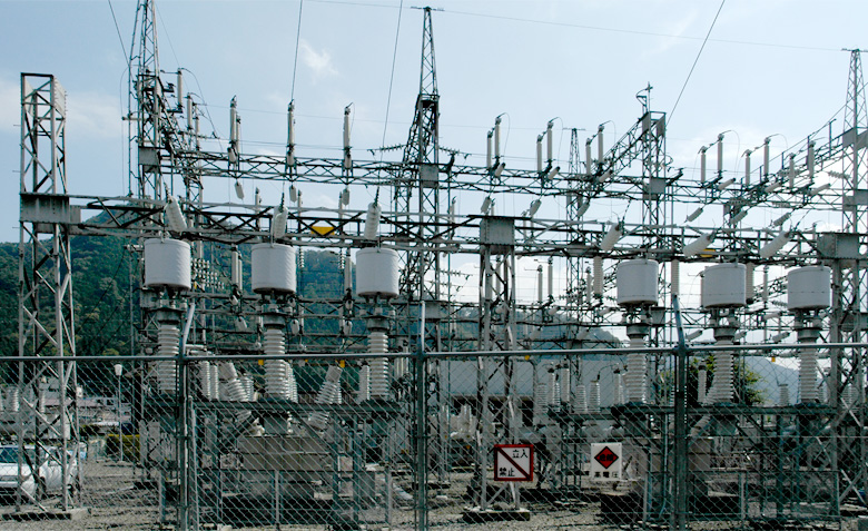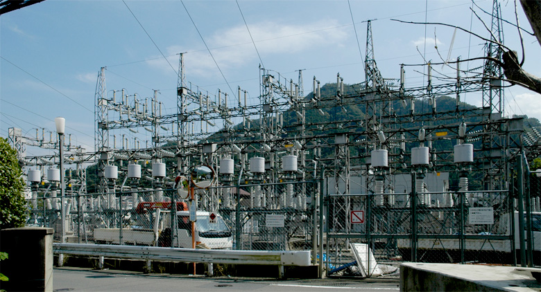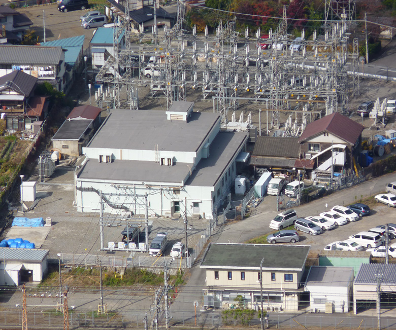 変電所の建物を介して、鉄道に送電されている様子が見て取れます。