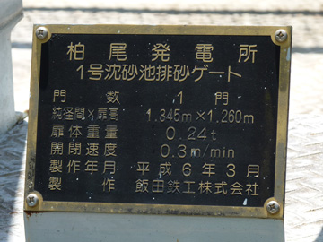 柏尾発電所取水ダム排砂門のプレート(本流側)
