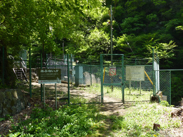 初鹿野発電所を探訪していると、構内に水路が見えてきました。いくつかの看板から、下流にある柏尾発電所の設備であることが分かりました。