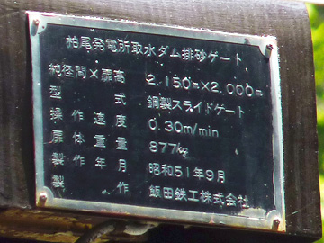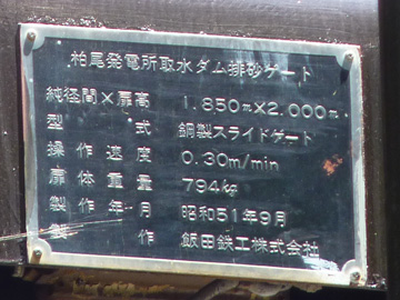 柏尾発電所取水ダム排砂門のプレート(右岸側)