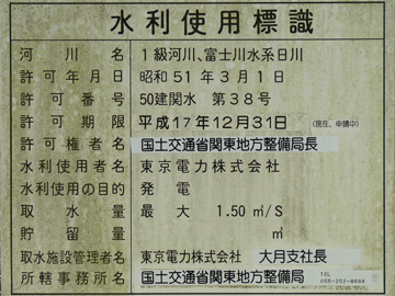 水利使用者名 東京電力株式会社