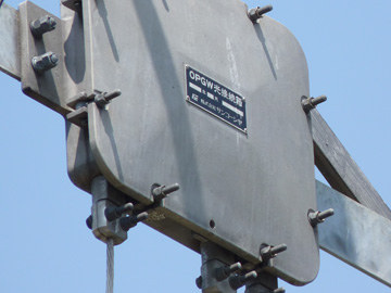 現在の架空地線(最上部の避雷用ケーブル)には光ファイバーが内蔵されているとのことです。