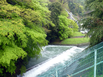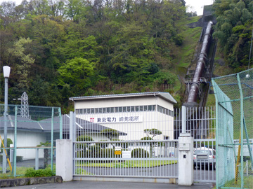 用水はその後、酒匂川左岸の山中をほぼ水平に貫き、河村新城のあった城山から一本の水圧鉄管で一気に落とされ、発電に使用されています。