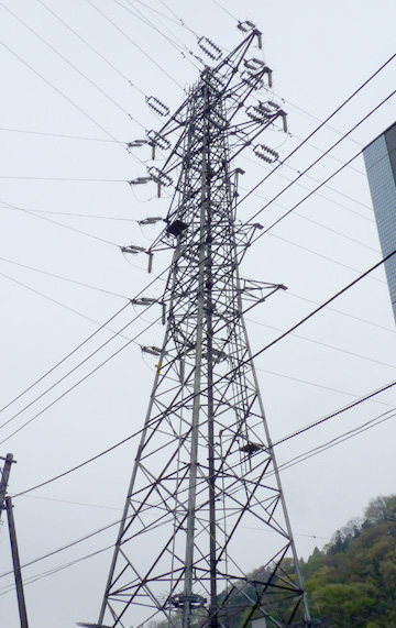 上の2回線が酒匂川線、下の1回線が峰線です。峰線の電力を受け、嵐線および峰発電所で発電された電力と合わせて酒匂川線に送る回路のようです。