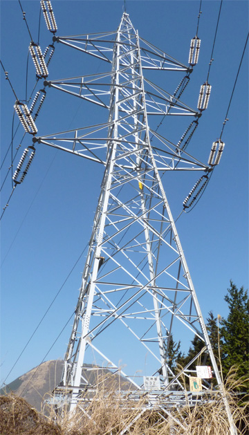 箱根明神ヶ岳の北西の支尾根にある入道岳を探索した際に撮影しました。 地図(Yahoo!地図) 富士山と眼下に連なる明神線 明神線 32 東京電力 明神線 32 昭和42年6月竣工 高さ31m 結界写真 交差視でごらんください。