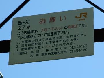 たまたま点検作業をされている方がいらしたので、この送電線について尋ねてみると、新幹線に送電するため、西相模変電所から沼津へ送電しているとのことでした。