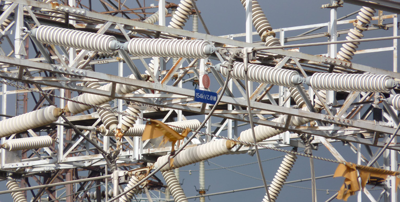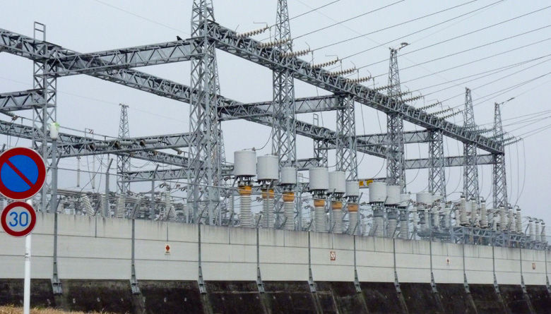 東西二つの施設を結ぶのは154kVの2回線(写真中央)