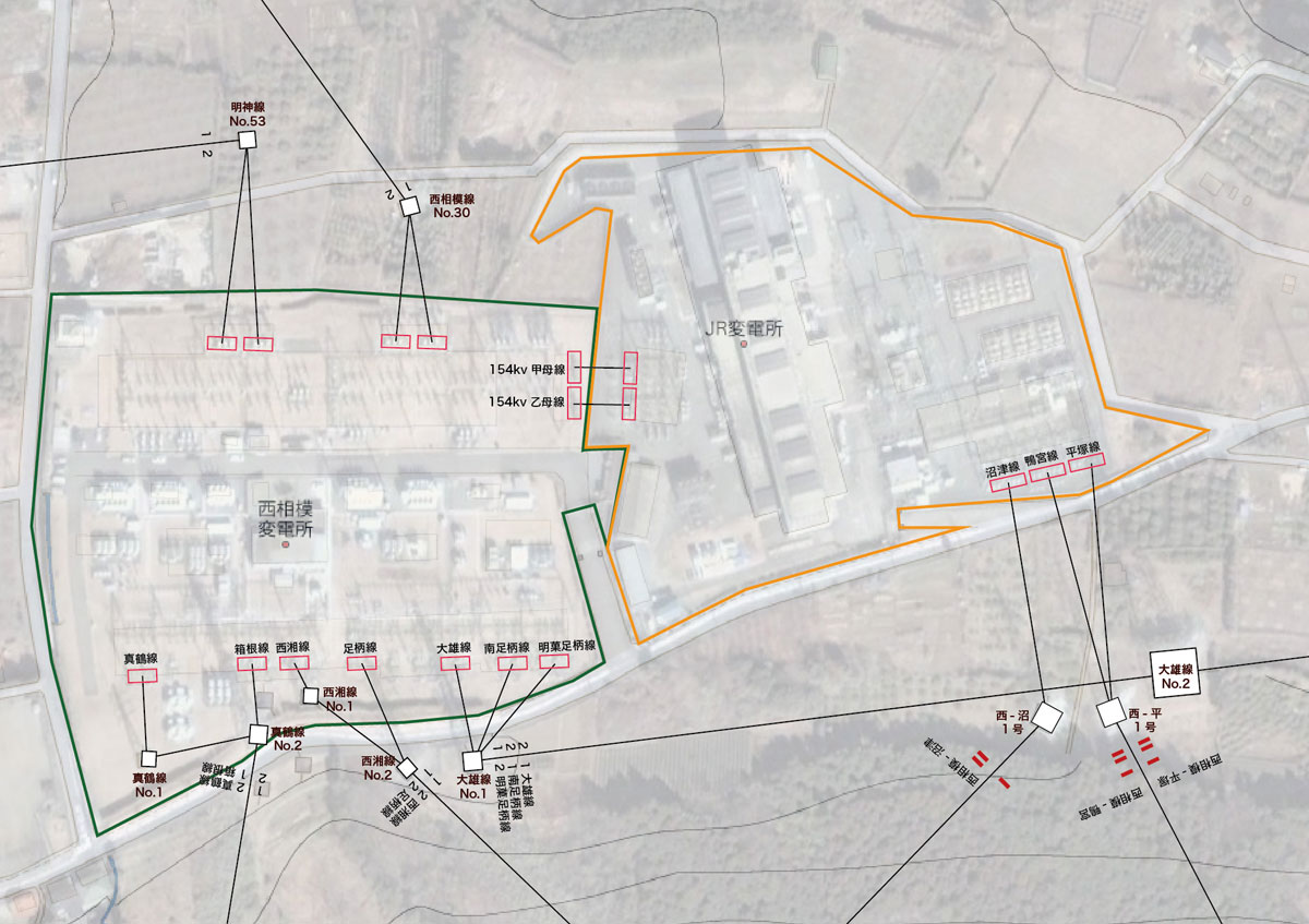 二つの設備間は154kV甲、乙母線で結ばれ、東電からJRへ売電しています。