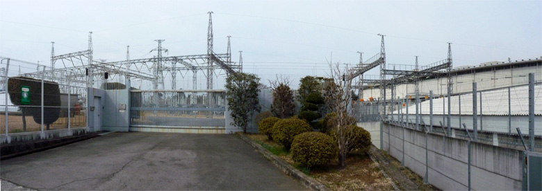 この変電所の特徴は構内が東西で二分され、西が東京電力、東がJRの設備となっている点です。
