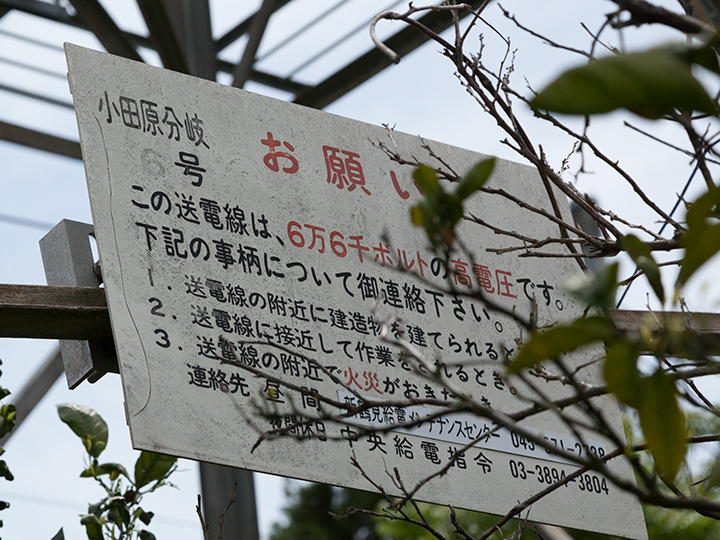 小田原分岐線はJR東日本所有の回線で、二宮-湯河原線No.73から分岐し、小田原駅構内の小田原変電所へ送電しています。