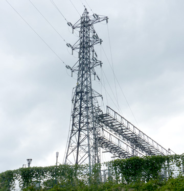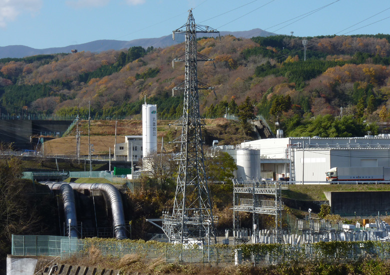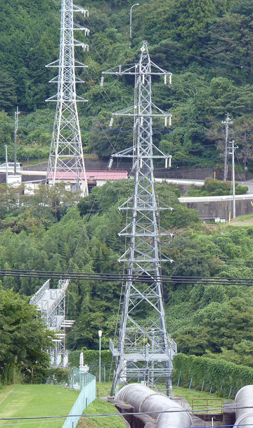 酒匂川線は菅沼発電所を起点とし、新秦野変電所を結んでいます。 1号鉄塔は菅沼発電所構内にあり、竣工年月を刻んだ銘版を撮影することは出来ませんでした。 酒匂川線 No.1全景 上部の回線が酒匂川線 須川線(6kV1回線)を併架 背後の台地は天神原調整池