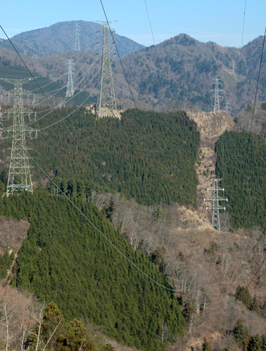 西丹沢の送電鉄塔群(交差視でごらんください)