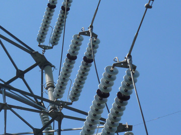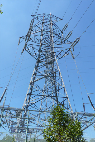 フェンスは夏草と蔓に覆われ、内部はよく見えなかったのですが、構内にある送電鉄塔須走線はなんとか撮影できました。
