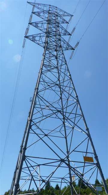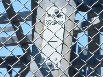背後の佐久間東幹線と重なって写っています。須走線はこれとは無関係で、田代幹線No.255から分岐し、変電所構内に建つオンリーワン鉄塔です。