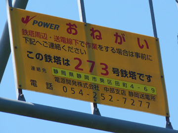 須走変電所の西には佐久間東幹線No.273が屹立しています。 佐久間東幹線は60Hzの西日本から越境してくる送電線のひとつです。