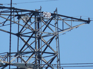 ヘリ巡視用プレートに記載された鉄塔番号NO.255