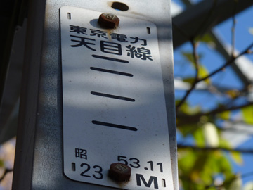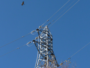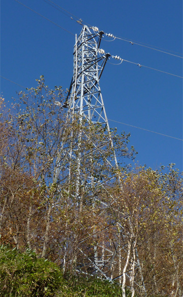 牛奥ノ雁ヶ腹摺山へ登頂するため、車で湯ノ沢峠を目指していると、終点近くで送電鉄塔が現れました。帰途、調べてみることにしました。 1回線で、碍子の数から22kVと判断しましたが、不思議なことに地形図に載っていません。後日、ハマイバ丸登頂のついでにもう少し調査することにしました。 地図(別窓)>> 東京電力 天目線 211号鉄塔 昭和53年11月竣工 高さ23m ノスリと 偶然、上空をノスリが飛んでいきました。