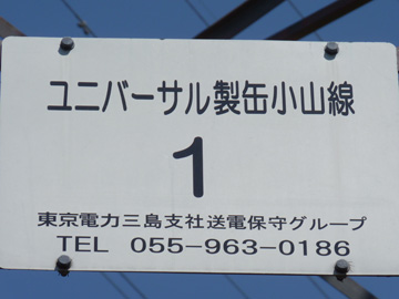 この送電線は東富士線No.9の原里線66kVから分岐し、三菱マテリアル小山工場を結んでいますが、三菱マテリアルと北海製罐の飲料用アルミ缶事業統合によって2005年10月よりユニバーサル製缶小山工場として運用開始したようです。