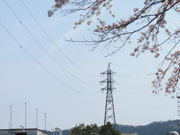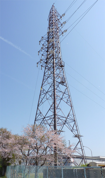 工場構内にある小山連絡線No.8鉄塔