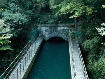 山北発電所から約2.5km上流で取水され、導水路は山中をほぼ水平に貫いています。