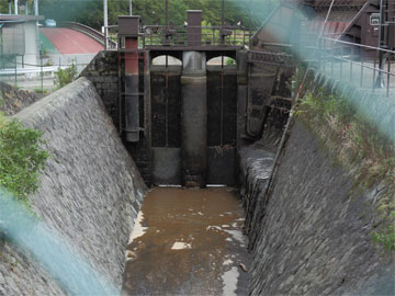 台風等の増水時には発電設備への被害を防ぐため水路は止められます。