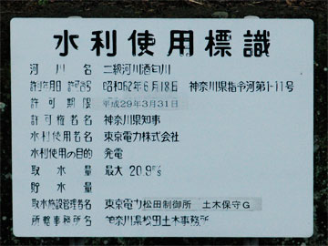 取水施設管理者名 東京電力松田制御所 土木保守G