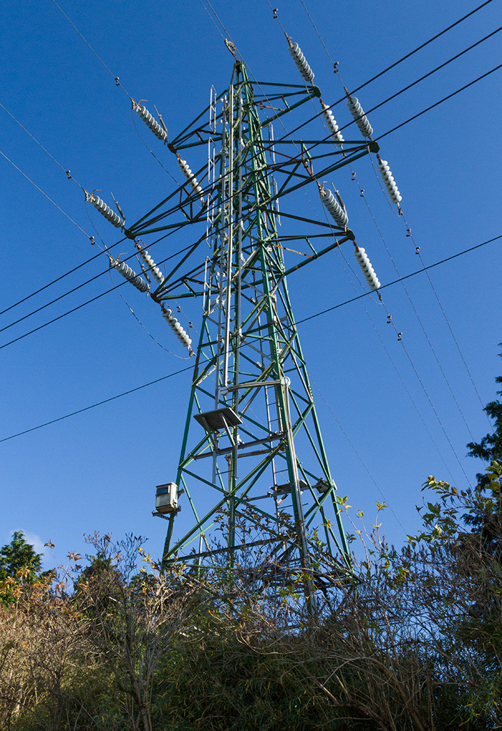 送電線JR湯河原-来宮線50号鉄塔は十国峠の南、熱海峠と東光寺を結ぶ道路脇にあります。